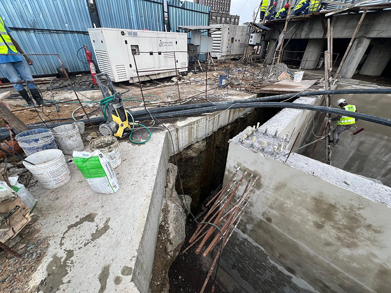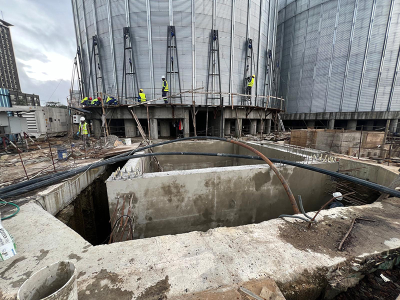 Comprehensive waterproofing works including: - Underground structures treated with KÖSTER Bitumen Emulsion - Grain storage reservoirs waterproofed using mineral sealing mortars - Pile head protection using high-resistance mortar