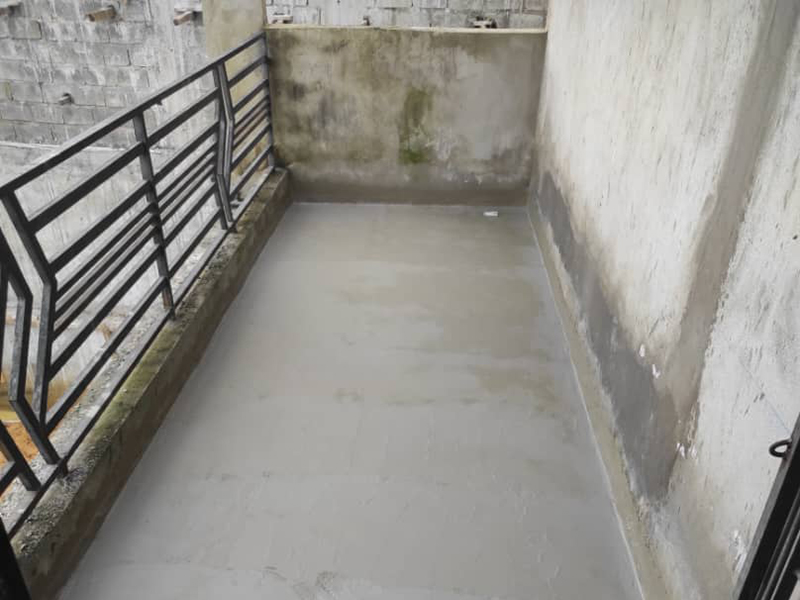 Waterproofing of a concrete terrace using KÖSTER NB Elastic Grey. Applied in two coats before tiling to provide flexible and durable protection against water ingress.