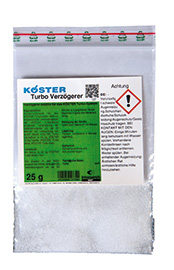 Additive for the KÖSTER Turbo System. For the adjustment of the mortar consistency of the KÖSTER Turbo System to individual requirements on the construction site.